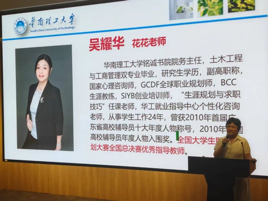 活动的压轴环节,吴耀华主任(花花老师)带来“生涯规划:凡事预则立”主题思享会。结合自身24年学生工作经验与多元职业资质,花花老师以生动的案例、深刻的感悟,为新生们破解大学困惑,指引生涯方向。
