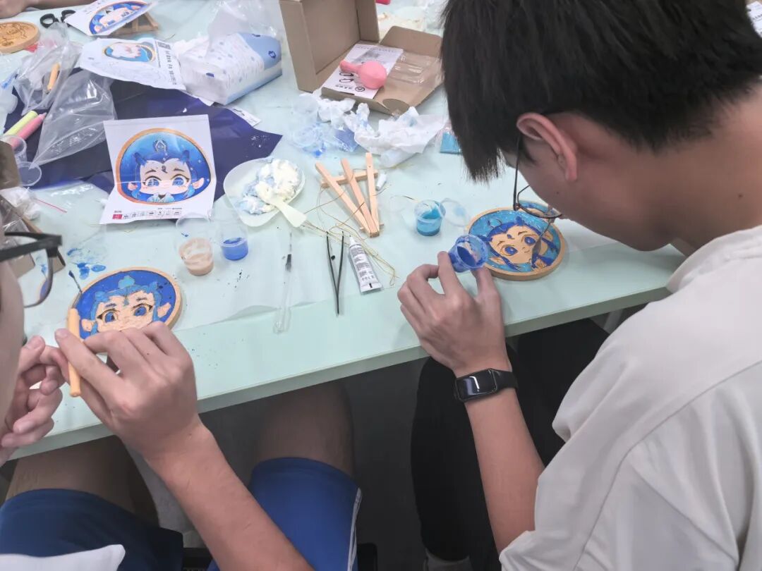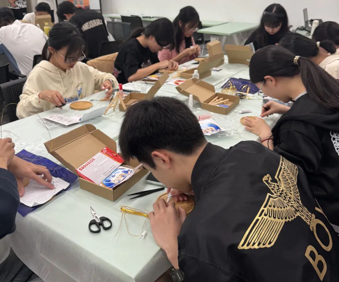 传统与创意碰撞的掐丝珐琅制作体验,是活动的亮点。活动现场配备了全套工具,让大家沉浸式感受这项传统手工艺的独特魅力。参与的同学专注勾勒线条、细心填充彩砂,在一掐一捻、一涂一抹之间,将创意与心意慢慢注入作品,亲手打造出独一无二的珐琅工艺品。大家尽情享受手作的乐趣,完成的作品亦可随身带回,作为校庆记忆与手作温度并存的美好留念,珍藏岁月里的熠熠闪光。