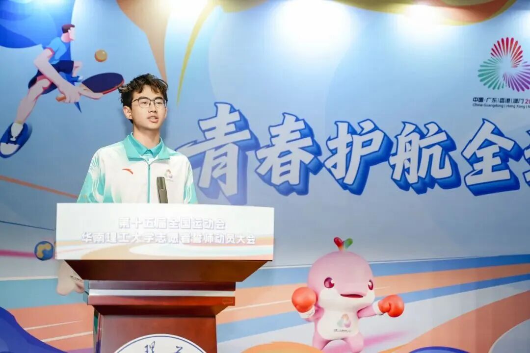 2025年11月8日上午,第十五届全国运动会华南理工大学志愿者誓师动员大会在五山校区励吾科技大楼国际报告厅举行。大会以“青春护航全运 实干彰显担当”为主题,展现了华工学子昂扬向上的精神风貌与志愿服务的坚定决心。