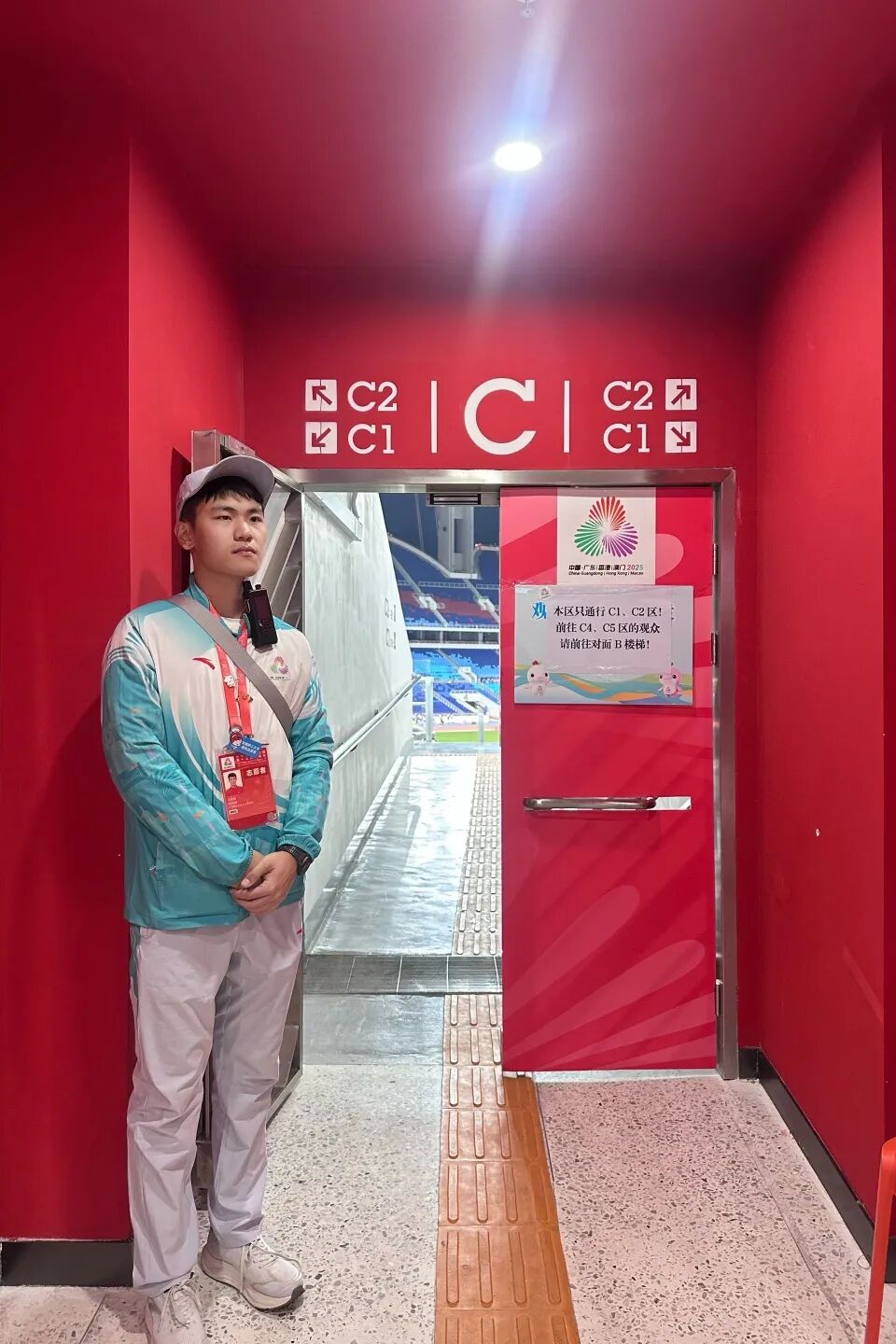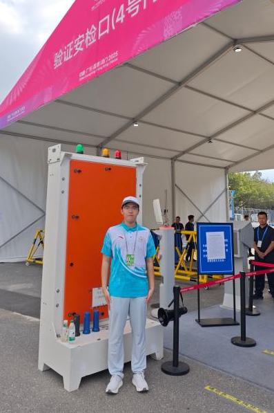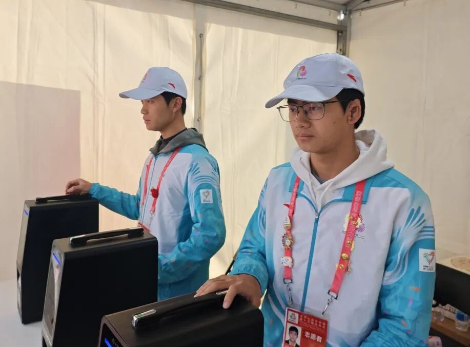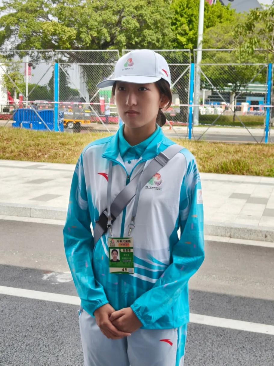 在本次全运会中,我先后参与了开幕式与田径赛事的服务。在开幕式部分,我是信息通信与科技团队的一员,主要负责站在安检口,对被查出没有贴标签的无线电设备进行登记和处理。对于大型赛事的开幕式来说,保持通信频道的安全非常重要,每一次细致登记、规范处理,都是在为开幕式的安全筑牢微小却关键的防线。此外,令我倍感温暖的是,我们九人组成的小团队在高强度的演练与服务过程中,始终互帮互助、彼此体谅,在紧密协作中结下了深厚的情谊,也圆满完成了各项任务。