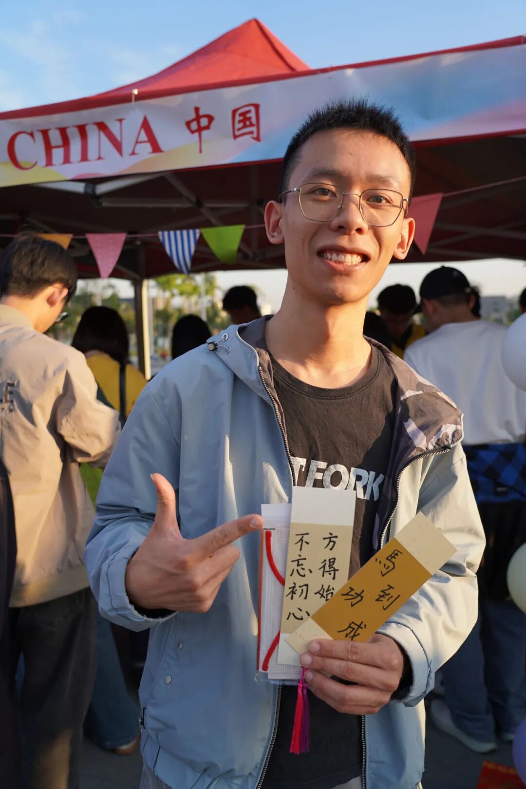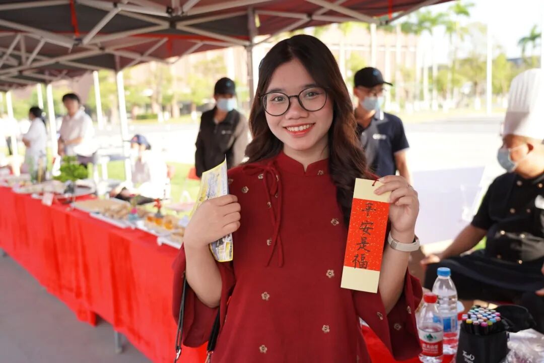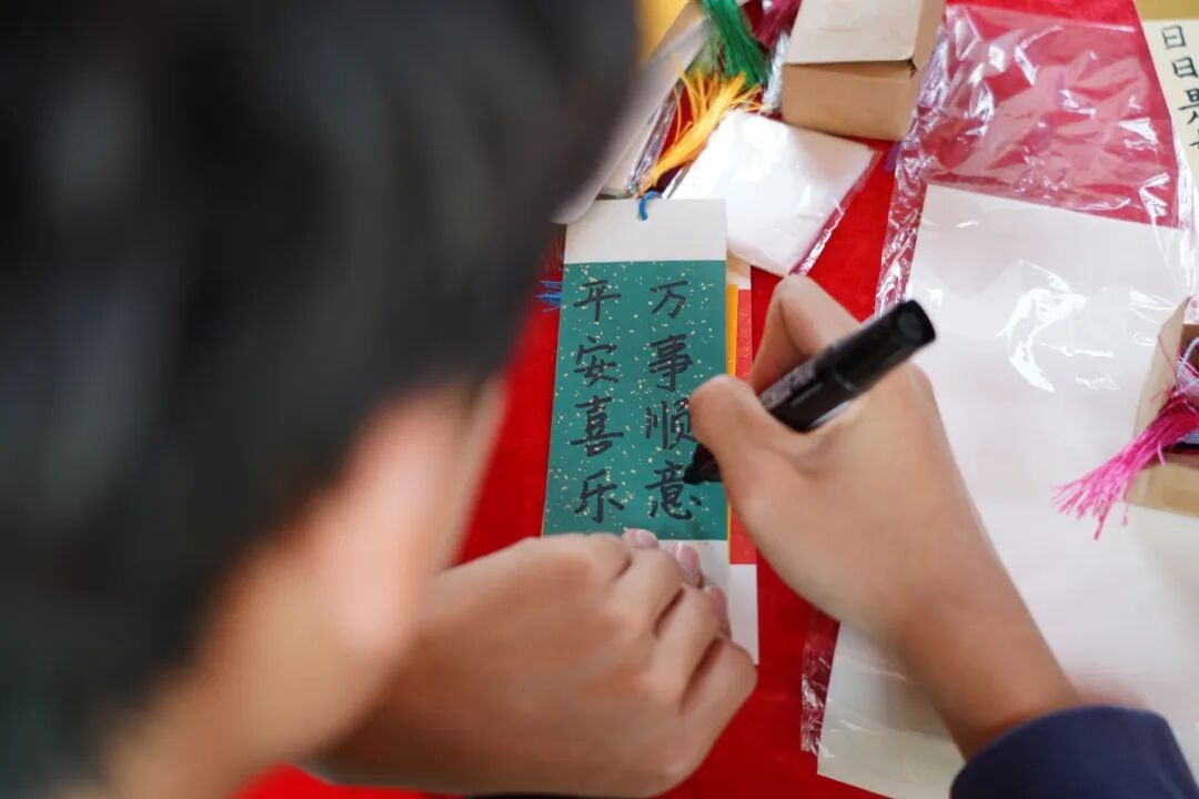 一旁,宿生会成员挥毫泼墨,“顺遂”“喜乐”“平安” 等美好期许跃然签上,为到场朋友们送上最真挚的祝愿。
