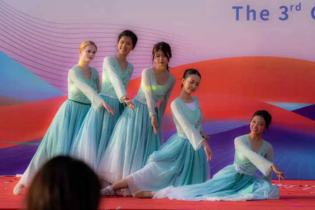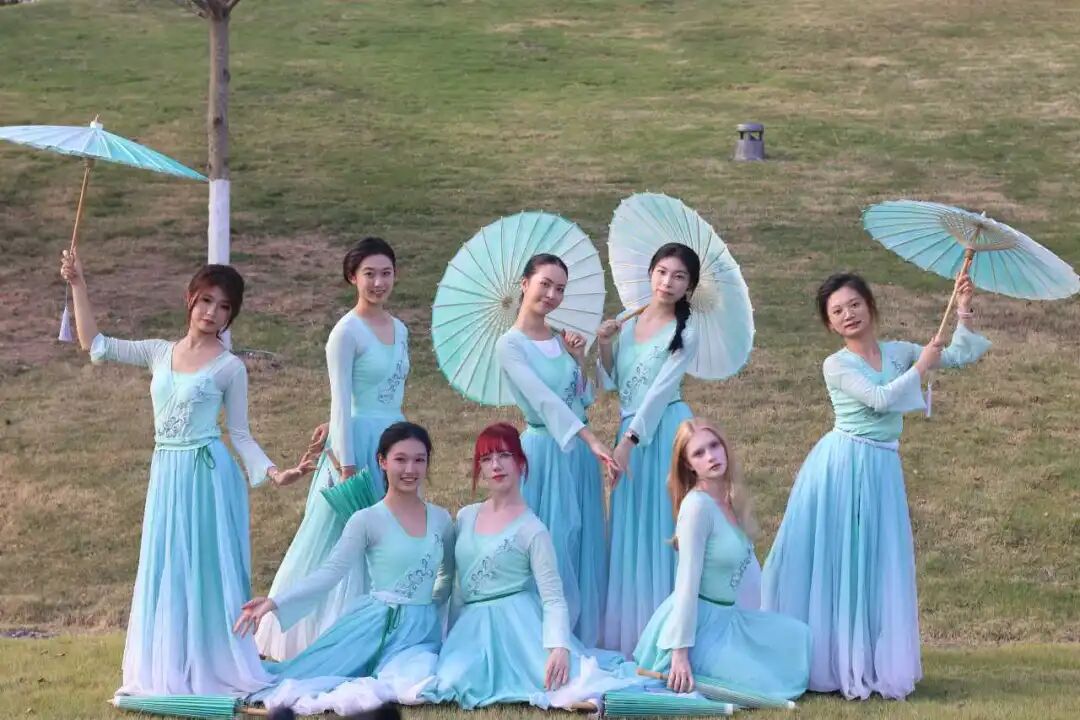 表演尾声,舞者们以齐整收势定格:或撑伞垂眸,或抬臂轻指,裙角垂落如溪水静流,阳光下的身影与台下持久掌声相融,成为这场 “中外共舞雨涧” 的最佳注脚。