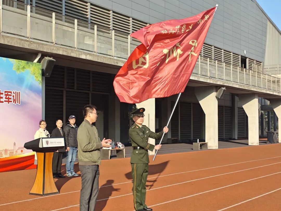 学校军训办公室向军训三团授军训团旗,随后军训团长向各连授军训旗。旗帜不仅代表连队的荣誉,也是全体成员团结奋进的精神标志。旗帜挥动的瞬间,操场上响起热烈的掌声,也标志着军训正式拉开帷幕。