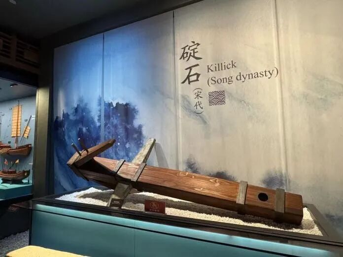 除了“黑石号”之外,博物馆中还展示了多件宋代碇石。碇石是古代船舶停泊时用于固定船身的石制锚具,宋代时期开始广泛使用。这些碇石看似粗糙简单,却是航海技术中的重要工具。它们通常由巨石打磨而成,有些还带有明显的磨损痕迹,可以想象它们曾经一次次被抛入海中,又一次次被拉起,伴随着商船一次次出航与归港。碇石的出现,标志着中国古代航海技术的不断进步,也让我们体会到当时航海活动的频繁与不易。