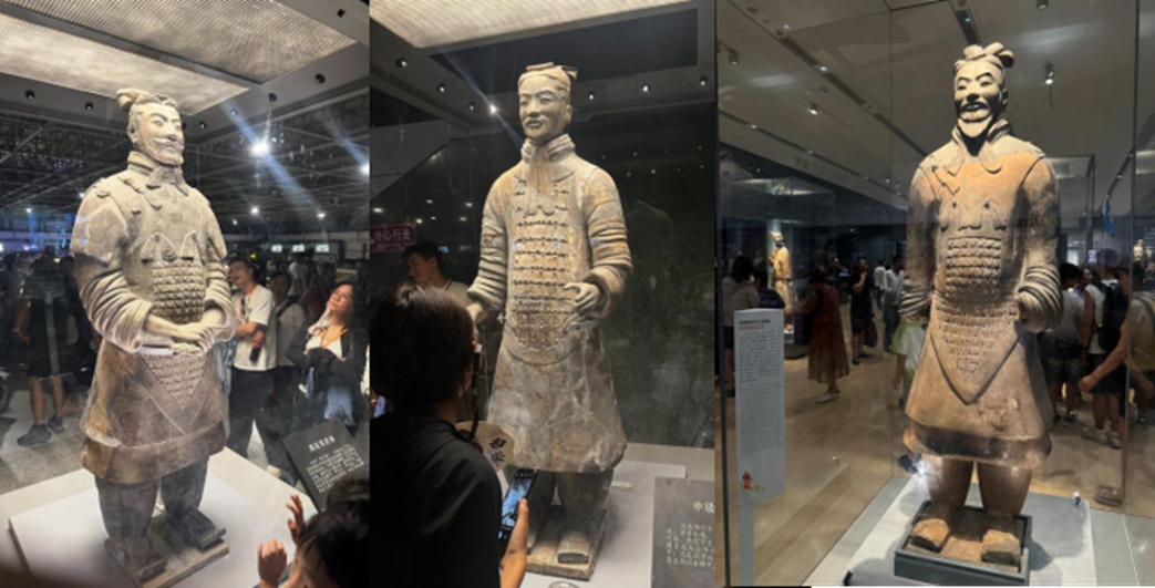 走出博物馆时,夕阳正洒在门前的秦始皇雕像上,他的目光望向远方,仿佛在凝视着自己开创的文明,如何在千年后依旧熠熠生辉。我忽然懂得,博物馆之所以是城市的灵魂,是因为它让我们与历史对话,与文明共鸣。那些沉睡千年的文物,终在我们的注视与守护中,成为连接过去、现在与未来的纽带,让中华文明的火种永远传递下去。