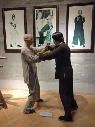 叶问与李小龙的武术传承是另一个让我驻足良久的展区。虽然叶问祖籍南海县罗村联星潭头村,1892年出生于佛山桑园,但他与南海的文化血脉紧密相连。展厅中展示了多张珍贵的历史照片,包括叶问亲自教授李小龙咏春拳中的小黏手技巧的场景,以及师徒二人的合影。这些照片生动记录了武术传承的瞬间,也展现了南海武术文化的深厚底蕴。