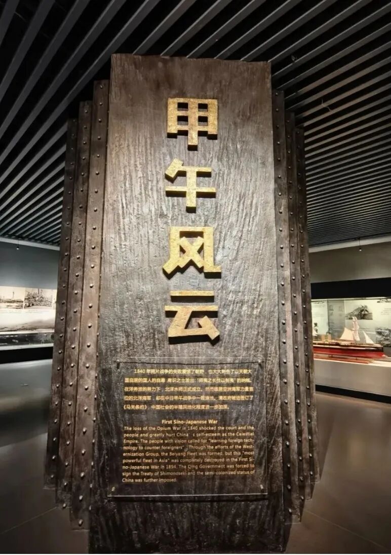 “甲午风云”展区里,济远舰的残件带着海水侵蚀的锈迹,丁汝昌殉国的蜡像场景肃穆无声,将士们紧握武器、目光如炬。我站在展柜前,仿佛能听见炮火轰鸣、将士呐喊,能感受到他们面对绝境时的悲壮与不屈。山海默默见证了这场屈辱的失败,也悄悄记下“落后就要挨打”的警示。