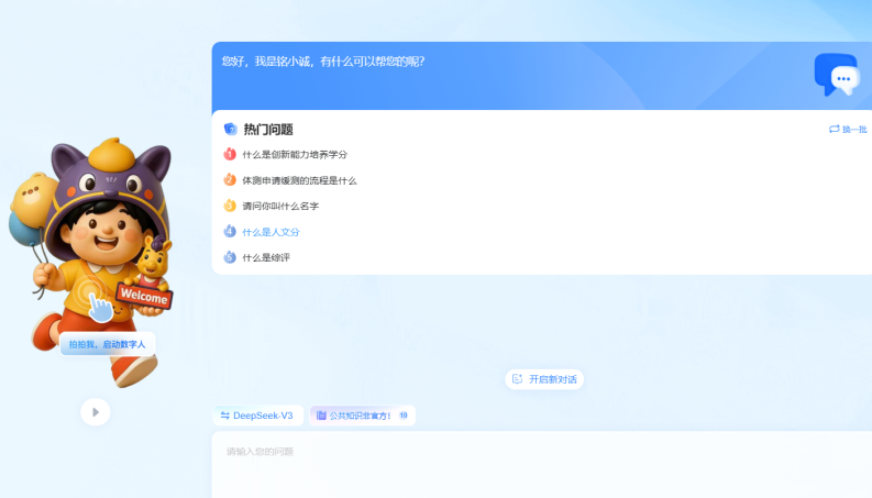 强化学生创新实践能力与职业竞争力提升,推动产学研深度融合。举行“777创意营”,聚焦创新创业路演和行业大咖分享;组织“青春黄埔行”“青春南沙行”,带领学生走进科技企业与创新基地。打造“铭诚微课”人文社科金课,邀请校内外人文社科专家学者,强化跨学科知识储备、批判性思维培养。主动拥抱AI,创新性开发铭诚骏界智能体“铭小诚”,遵循书院独创的“GAI-书院教师-学生”三元互动协同原则,兼具智能问答、决策辅助、管理中枢功能,24小时全天候服务师生,提升事务办理与信息查询效率,辅导员从事务工作中解放出来回归价值引领工作。