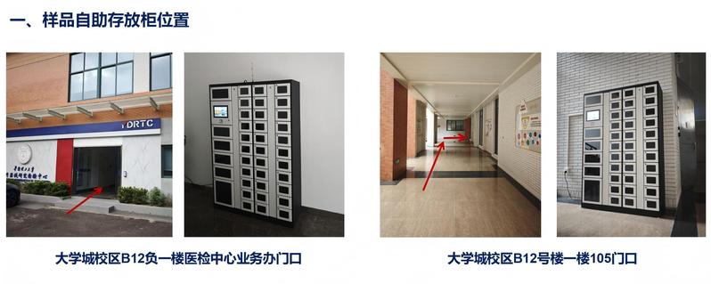 为了进一步提高医检中心服务效率,方便师生进行跨校区测试样品传递,中心现已在大学城校区开放校内样品自助存放柜服务,欢迎广大师生使用。