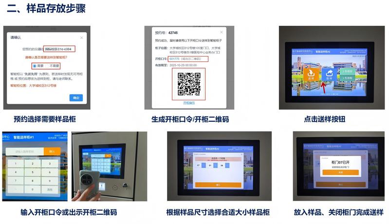 1.根据设备位置与您所在校区选择是否需要使用样品柜,目前仅大学城校区B12号楼设置样品接收柜。选择不需要样品柜,可直接送样至试验室。