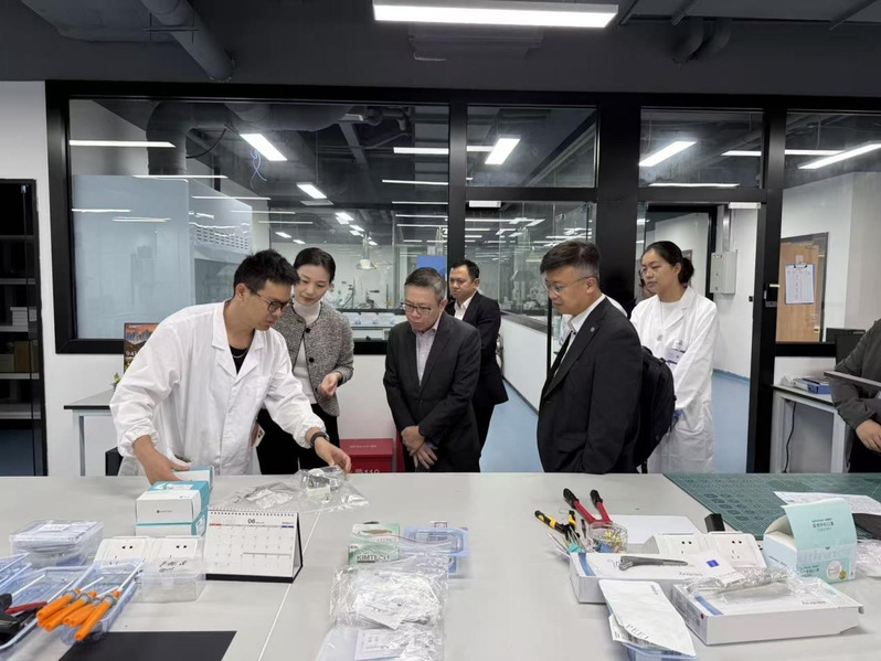 12月11日,香港科技园公司行政总裁黄秉修先生到访华南理工大学医疗器械研究检验中心,围绕科研攻关、平台共建与成果转化开展调研座谈。黄秉修先生现场考察了中心实验室,详细了解科研平台运行与质量管理情况,并阐述了此次访问的重点关切与合作意向。