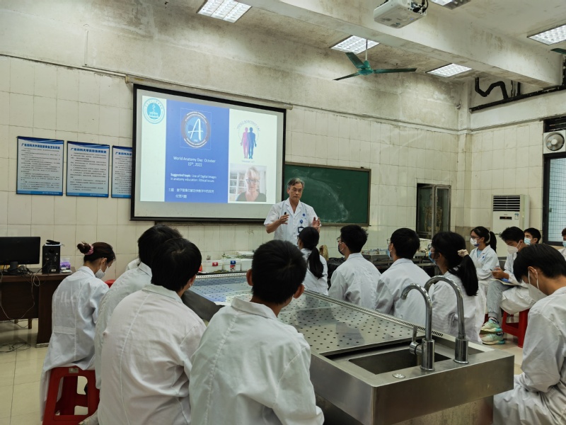 2022年10月15日是第四个世界解剖日,徐飞教授向同学们介绍了今年国际解剖学工作者学会联盟(IFAA)主席Keramer教授推荐的主题“数字图像在解剖学教育中的应用: 伦理问题”,系统回顾了近年来我国遗体捐献中知情同意、医学科研伦理审查和数字图像应用的伦理等方面的规范化和最新进展;并为大家讲述他从事遗体捐献以来接触到的众多遗体捐献者们的无私奉献和感人事迹。