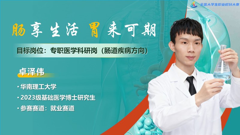 卓泽伟以成为一名“胃肠疾病方向的医学科研专家”为职业目标,谈起职业缘起,他从个人经历娓娓道来。陪伴家人对抗肠胃病多年,使他明白了如果只在症状后追赶,治疗便永远被动。因此他选择从源头寻找答案,成为破解疾病密码的人。家人之痛、时代之需、国家使命三重力量推动着他从临床问题出发,贯穿“临床—基础—转化”全链条研究,一步一个脚印的积累、突破,为这个时代做出青春答卷。