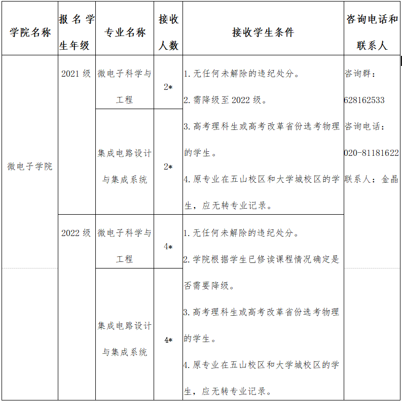 2. 5月4日 - 5月11日,微电子学院安排面试,具体时间地点学院将在微电子学院主页- 通知公告栏目发布通知。身体条件不符合转入专业者,应退回原专业。