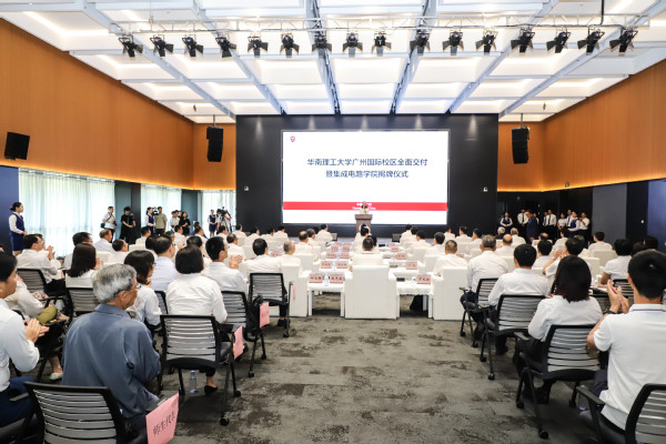 7月16日上午,华南理工大学广州国际校区全面交付暨集成电路学院揭牌仪式举行。华南理工大学党委书记章熙春、校长张立群,省政府副秘书长许典辉,省教育厅厅长朱孔军,广州市副市长江智涛,中国科学院院士、香港大学原校长郑耀宗,番禺区委常委、常务副区长麦洁萍,学校党委副书记陶韶菁,党委副书记、纪委书记徐国正,党委副书记麦均洪,副校长朱敏、李正、徐向民、晋刚,越秀集团党委副书记、总经理林昭远,越秀地产广州公司党委书记、总经理徐琦,中建五局党委副书记、总经理刘冬出席仪式。