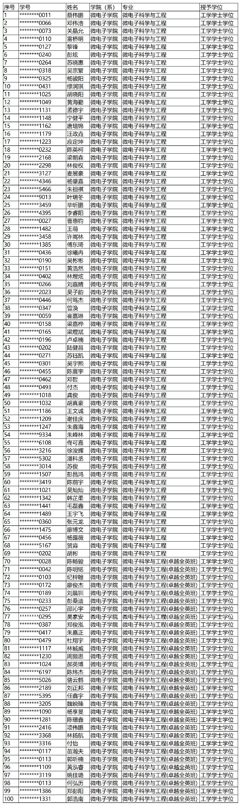 经审核,现将微电子学院2023届本科生第一批次拟毕业名单进行公示,具体名单如下: