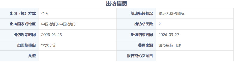 根据学校相关规定,现将微电子学院薛泉老师拟于2026年3月26日至2026年3月27日赴澳门进行学术交流的情况予以公示,公示期为2026年3月19日—3月21日。
