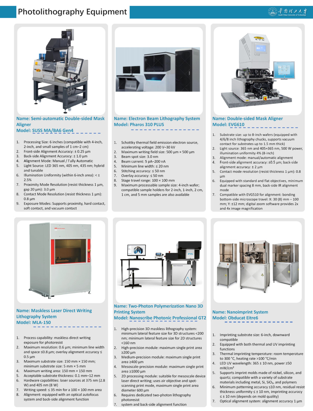 For Process and Fabrication Equipment: Mr. Jiang(jiangchao@scut.edu.cn)