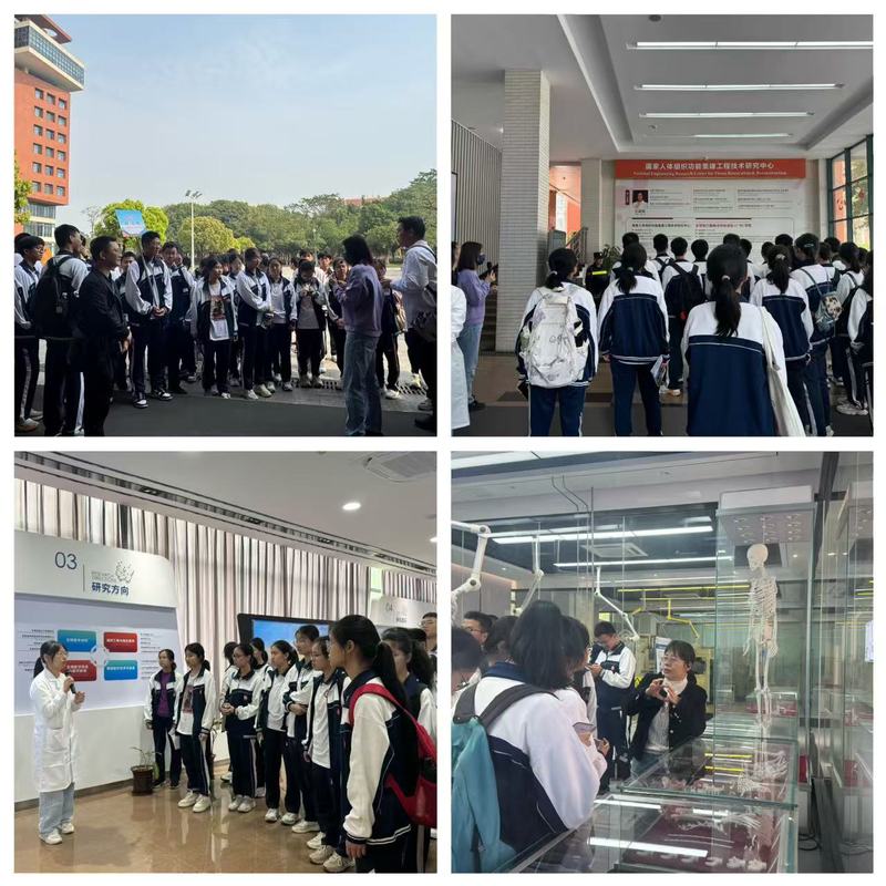 近日,河源中学组织部分师生前往国家人体组织功能重建工程技术研究中心(以下简称“中心”)开展了一场意义非凡的研学活动。此次活动恰似一场科技与青春的热烈碰撞,为学生们推开了一扇通往了解生物材料前沿领域的大门,也在他们心中种下了科学探索的种子。