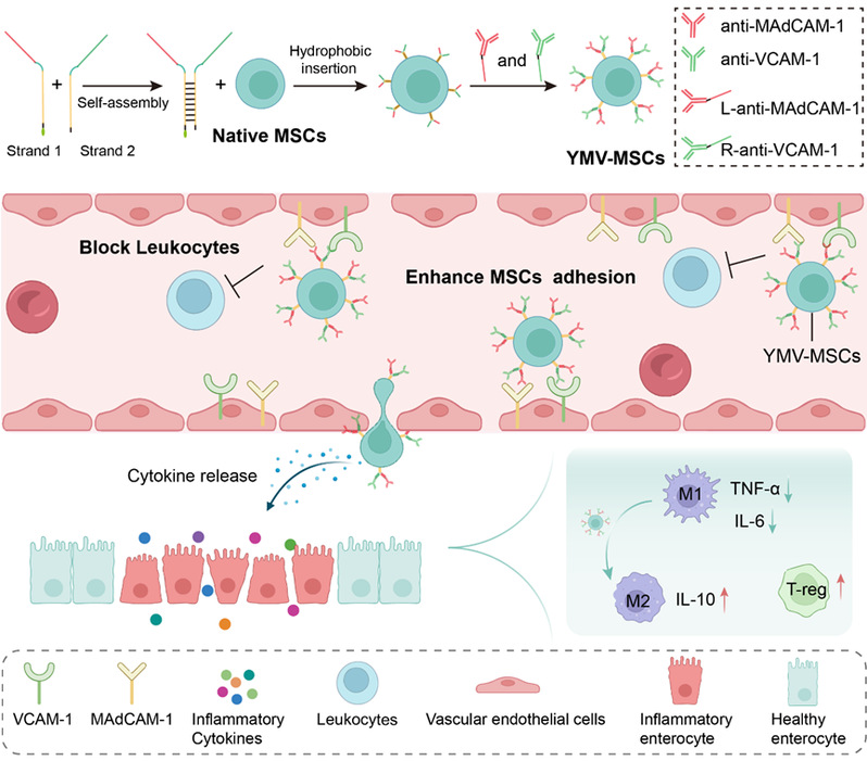 双特异性抗体工程化MSCs治疗IBD示意图