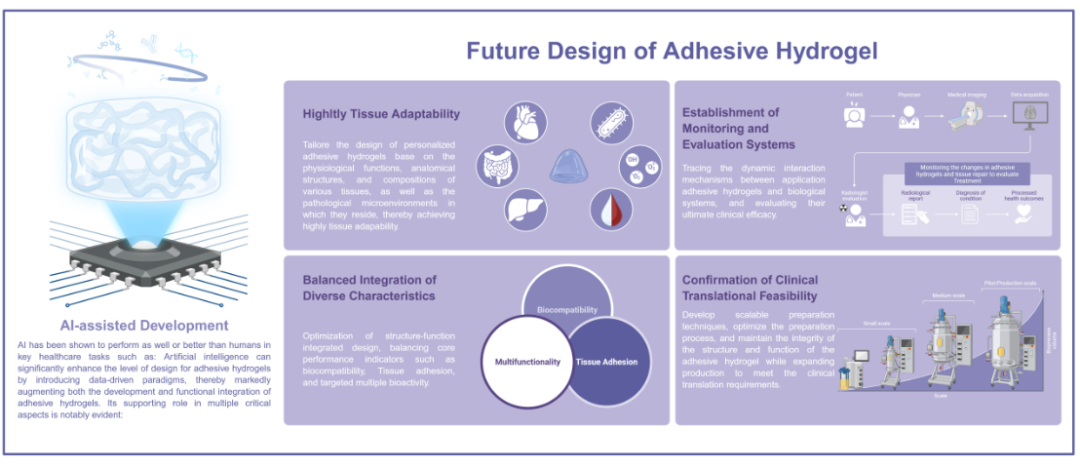 图2. 粘附水凝胶未来设计的前瞻性路线图。