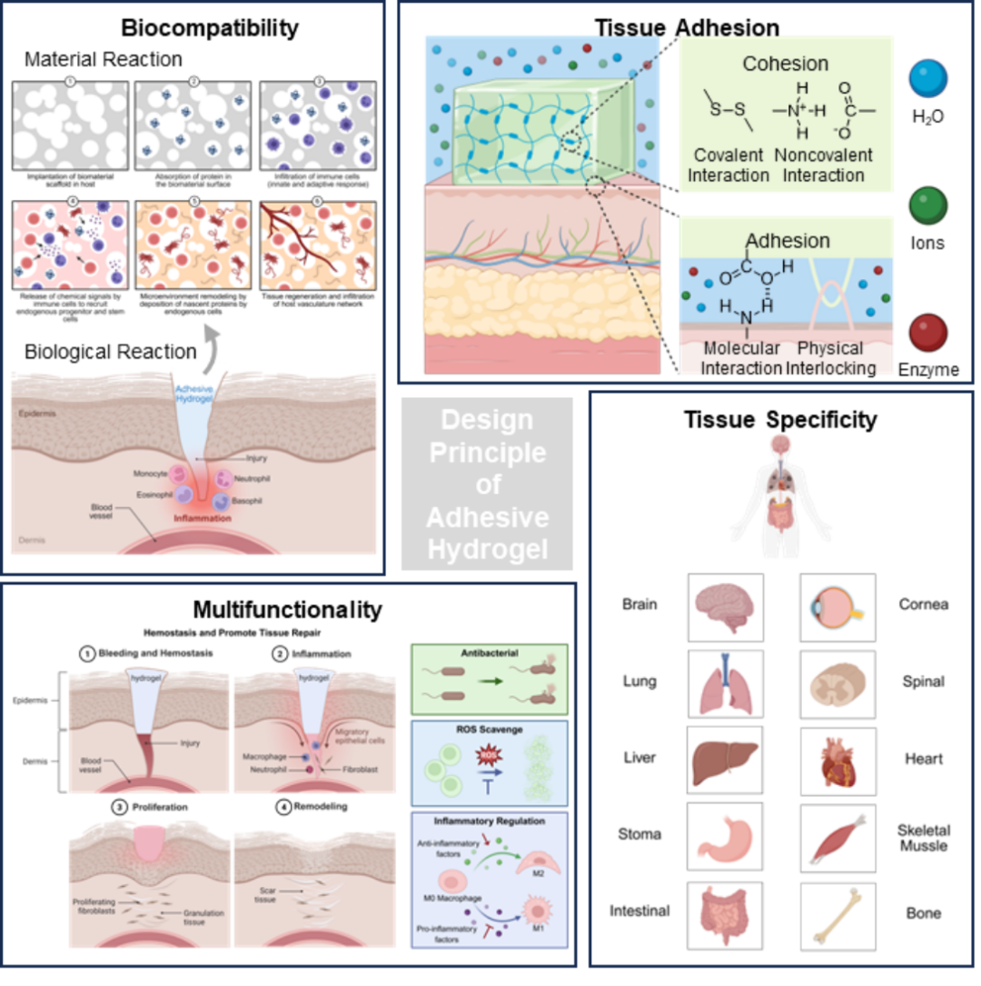 图1.粘附水凝胶的设计原则。