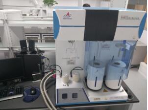 本课题组的比表面及孔径分析仪是贝士德公司推出的新一代3H-2000PM系列比表面积及孔径分析仪,采用由计算机控制全自动运行的分析系统,可测试粉末、颗粒、纤维及片状材料等可装入样品管的材料,并利用多种分析理论分析材料的比表面积、孔径孔容、孔径分布等数据,测试重复性高。该仪器具有2个样品预处理脱气站,1个样品分析站,可独立工作;具有独立的饱和蒸汽站(P0)测试站,保证分压测试的高准确性。测试范围:表面0.01m2/g至无上限,重复性误差小于±3%;孔体积0.0001cc/g至无上限,同种分析理论体积误差±0.03mL/g。 |