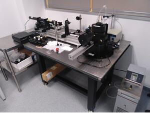 激光光散射仪 | 可进行静态光散射(SLS)与动态光散射实验(DLS)。当光穿过非均匀体系时,就会发生散射现象,散射光因此包含有该体系的信息。动态光散射(DLS)又被称为光子相关谱法(PCS),该方法通过检测散射强度随时间的变化,使用散射强度的自相关方程,自相关方程中包含了悬浮颗粒或者溶液中高分子的扩散系数的平均值及其分布等信息。从扩散系数的分布中可以得到粒度大小与分布以及其它动力学参数。静态光散射(SLS)对于悬浮于液体中的粒子,利用Mie散射形成光强与角度的函数关系,检测散射强度随角度的变化,从而得到颗粒粒度大小与形状的信息。对于高分子溶液,光强与角度、浓度形成的依赖关系(即浓度依赖性与角度依赖性),利用Zimm图(或其他类似的方法)可以得到以下参数:Mw重均分子量(绝对值)、Rg均方根回旋半径或均方末端矩、A2第二维里系数。 本课题组使用Brookhaven BI-200SM Research Goniometer and Laser Light Scattering System,可进行动态、静态光散射实验,并配备红、绿激光双光路,有效避免特定波长光的吸收现象。可测量高分子Mw重均分子量(绝对值)、Rg均方根回旋半径或均方末端矩、A2第二维里系数、粒度大小与分布等。 可测量粒度范围:1nm-6μm; 分子量范围:500~109Dalton; 角度范围:8-162°,±0.01° 温控范围:-20~80℃ 光源:632.8nm, 532nm激光 |