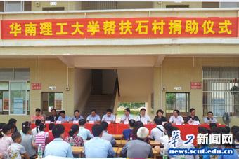 |  | 仪式现场 | 李琳副书记讲话 |  |  | 向梁麟炳小学捐款 | 与村干部和贫困户座谈 | | | | | 6月14日,华南理工大学党委副书记李琳率队前往河源市和平县贝墩镇石村帮扶济困。帮扶捐助仪式在石村梁麟炳小学举行,学校党委组织部、党委统战部、继续教育学院等单位负责人,以及和平县、贝墩镇相关负责人出席了仪式。 捐助仪式上,李琳勉励梁麟炳小学的学生们保持积极向上的心态,充分利用各方面提供的学习条件,树立远大的学习目标,努力学习,争取到华南理工大学等高等学府学习深造,成长为国家栋梁之才。李琳表示,华工对石村的经济建设、留守儿童的教育非常重视,今后将开展形式多样的捐助帮扶活动,尽最大能力为石村小学的师生创造更好的学习生活条件,解决各种困难,共同把石村建设好。 此次,华南理工大学捐出5万元资助村民启动虫子鸡养殖项目和黄豆种植项目,继续教育学院向石村梁麟炳小学捐助5万元和一批文具,体育学院也为小学捐赠了运动器材。 和平县委县政府感谢华工积极开展扶贫开发“双到”工作以及为之所做的努力。 据了解,华南理工大学积极推进扶贫开发“规划到户、责任到人”工作。两年多来,学校通过划拨专款、师生募捐、向省级单位争取专项资金扶持等形式,多方筹措扶贫资金,帮助村民发展养殖业、种植业,为村民义诊、为贫困户购买医疗保险,并捐资助学、改造危房、修建村委办公楼、筹建村道。据不完全统计,已为石村建设投入资金超过180万元。今年,华工结合石村实际情况及年度计划,捐资启动了虫子鸡养殖项目和黄豆种植项目,并继续进行村道硬底化工程、建设公厕和垃圾池等工作,以尽快帮助当地村民完善公共设施,脱贫致富,提升生活质量。(图文/通讯员 温志雄 吴章艺 驻石村扶贫工作组 编辑/卢庆雷)