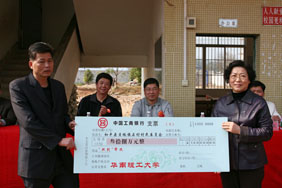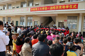 在随后举行的统一战线捐资助学仪式上,刘琪瑾副书记表示,自2010年4月份以来,华工统一战线成员先后4次来到石村开展扶贫助学系列活动,总资助金额达8万元,用于课室桌椅、饭堂桌椅、文体用品的购置以及阅览室建设、水电工程等项目,并通过“共享一片蓝天,牵手助学贫困生”活动,每年认助石村小学15名贫困生。这些捐助和帮扶活动大大改善了石村小学的教学条件和生活环境,丰富了小学生们的精神和物质生活。