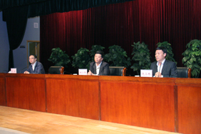 辅导报告结束后,土木与交通学院力学党支部书记张红、电力学院辅导员孙云飞、经济与贸易学院2010级硕士生第一党支部书记李云龙三位基层党支部书记代表分别就他们在支部工作中积累的经验和做法与大家做了交流。