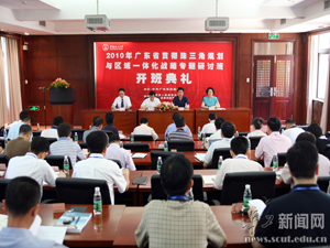 5月24日上午,2010年广东省贯彻珠三角规划与区域一体化战略专题研讨班开班典礼在22号楼举行,此次研讨班由广东省委组织部主办,广东省政府办公厅、广东省发改委协办,华南理工大学承办。华南理工大学党委副书记刘琪瑾、广东省发改委副主任余云州、广东省委组织部干部培训处处长曾祥华,华南理工大学党委组织部、工商管理学院相关负责人出席典礼,开班典礼由学校组织部负责人主持。