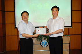 9月19日,为期六天的2009年广东省领导干部政府公共服务与绩效管理研讨班在华南理工大学12号楼举行了结业典礼,全体42位学员圆满结业。华南理工大学校长李元元、中共省委组织部干部培训处调研员副处长周钦声、教师代表阳江市常务副市长钟毅以及学校党委组织部、公共管理学院、工商管理学院负责人出席本次结业典礼。李元元校长为学员一一颁发结业证书,并合影留念。至此,2009年广东省领导干部政府公共服务与绩效管理研讨班顺利圆满结束。 李元元校长代表学校对顺利结业的学员表示热烈的祝贺,对学员的学习热情也表示了高度的赞赏,希望各位学员有机会、有时间就常来华工看看,为学校的建设和发展提出宝贵的意见和建议,不断推进学校与各地市和各级政府部门的合作与交流。 学员代表肇庆市委常委、常务副市长郭峰代表全班同学对华南理工大学的办学质量表示充分的肯定,“学员在校学习期间增长了知识、拓展了视野、提升了素质。”学习期间,全体学员在工商管理学院和公共管理学院前分别种下了三棵树,取名为“公绩”树,以表示对华南理工大学的感谢,也留下了属于“公绩”班的印记。 (图/通讯员 冯璐 翁洁妮 工商管理学院 文/党委组织部、公共管理学院、工商管理学院供稿 编辑/龚华萍)