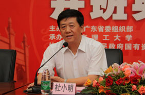 杜小明副书记在典礼上首先致辞。他指出,面对建设人力资源强国、构建终身学习教育体系的新要求,从中央到广东省委省政府,都非常重视干部培训教育工作。作为教育部重点建设的“211工程”、“985工程”大学,华工是一所以工见长、理工结合、经管文法相辅的高水平研究型大学,先后多次承担了省委组织部、省国资委组织的干部培训任务,取得良好的成效。参加研讨班的学员都是企业的精英和骨干,拥有丰富的实践经验,希望大家在学习中多和老师互动交流,一起探讨管理经验和未来发展方向,促进共同进步。