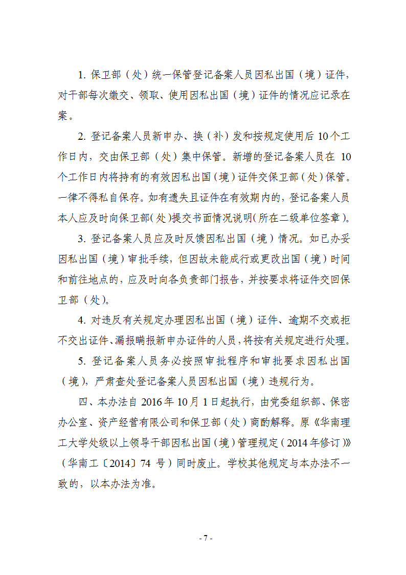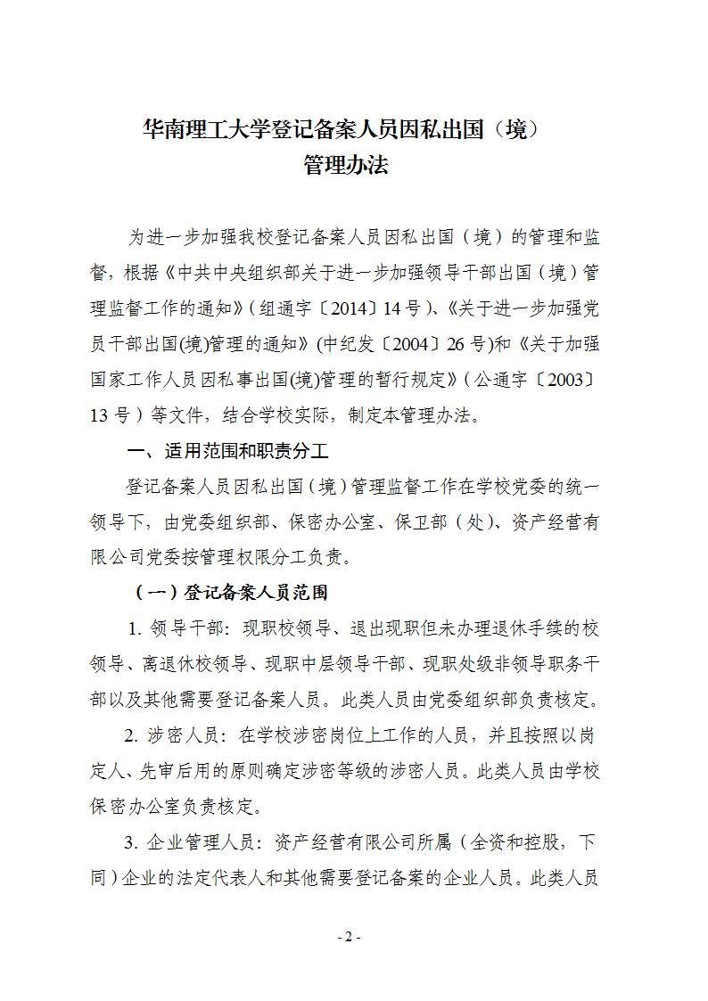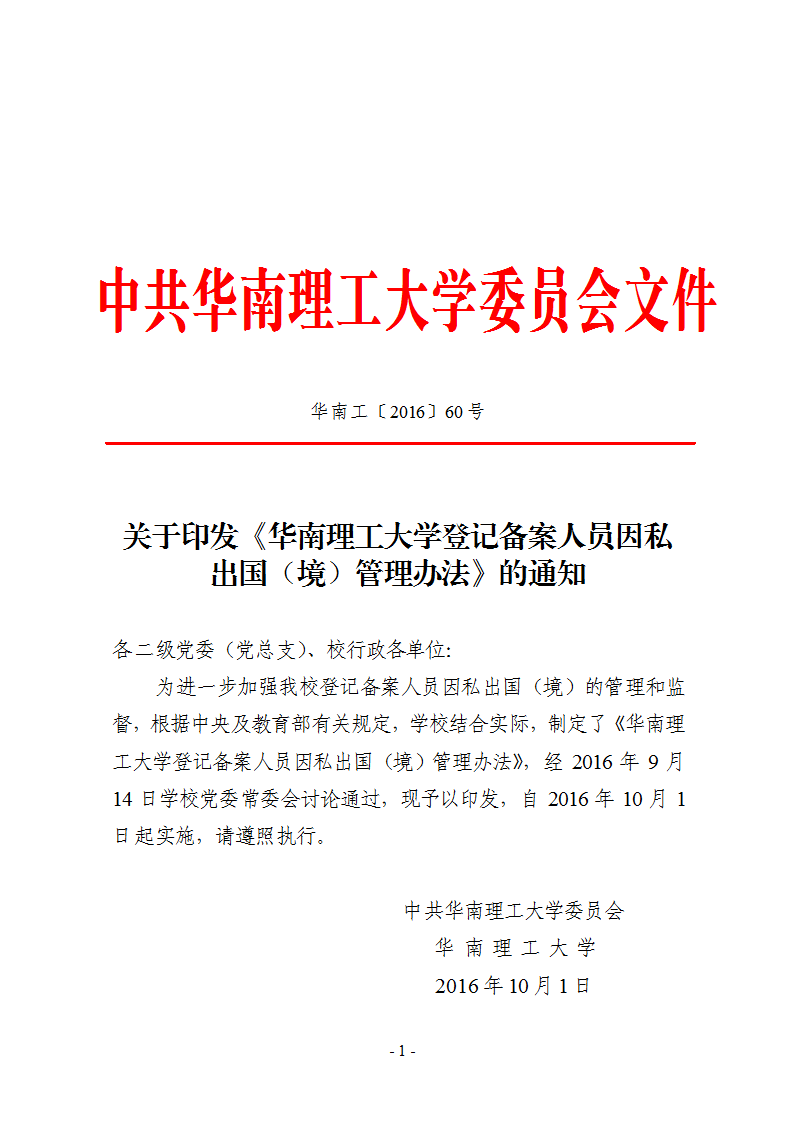 关于印发《华南理工大学登记备案人员因私出国(境)管理办法》的通知