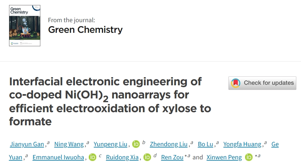 生物质衍生的木糖电化学氧化(XOR)为甲酸提供了可持续的化学生产和可再生能源整合途径。然而,传统镍基催化剂存在较高的过电位,容易产生活性的 Ni3+ 物种及竞争的副反应,这限制了其可实现的电流密度和选择性。我们设计了碳毡上的共掺杂 Ni(OH)2 纳米阵列,以克服这些限制。该催化剂在 100 mA·cm−2 下 XOR 电位极低,仅为 1.34 V,比氧释放反应低 242 mV,同时提供法拉达效率>92%,并在 250 mA·cm−2 下保持稳定性能。机制研究表明,钴掺杂通过连接氧原子,诱导镍与钴之间的电子转移,形成镍–氧-钴界面单元,作为高效的电子通道,加速电荷转移并降低Ni3+形成的能量障碍。结合超亲水和超怕气纳米阵列架构,确保卓越的质量传输,催化剂实现稳定且高速的性能。本研究阐明了界面电子工程和纳米结构设计在调制反应能中的作用,为高效生物质电氧化提供了有效策略。