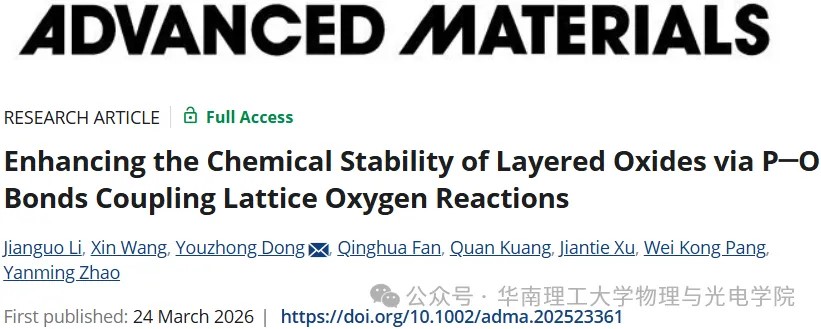 科研动态| 最新AM!董有忠团队:通过P-O键耦合晶格氧反应以增强...