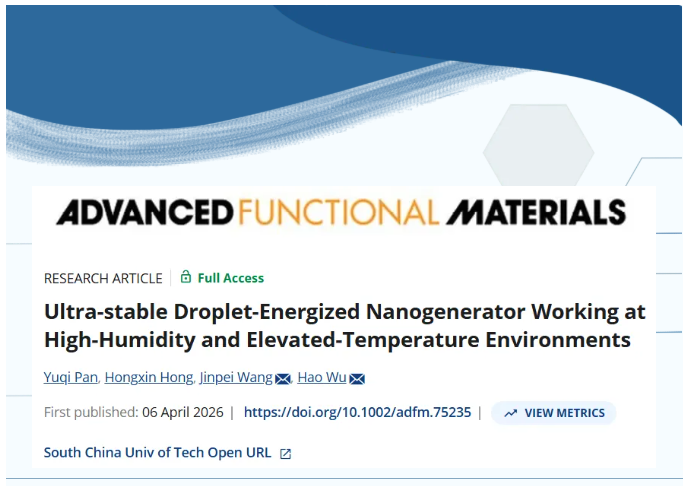 吴昊教授团队揭示液滴赋能的纳米发电机在高温高湿环境中的超稳定...