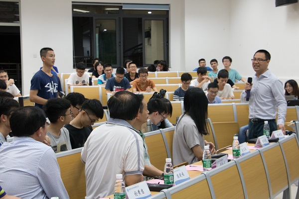 接下来是於黄忠教授为学生们讲解第二个赛题:可控磁悬浮小车。於黄忠教授在讲解之余还鼓励学生们自己动手,勇于创新。同学们积极提问,教授有耐心地一一解答。教授在最后抽出在场获得二等奖的幸运儿。