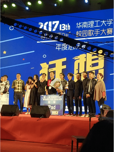 11月26号晚7:00,第十三届“寻找新声Dai”校园歌手大赛于五山校区海丽文体中心准时开幕。经过总决赛当晚激烈的角逐,我院李昱坤同学所在的阿卡贝拉组合八鸽荣获冠军!
