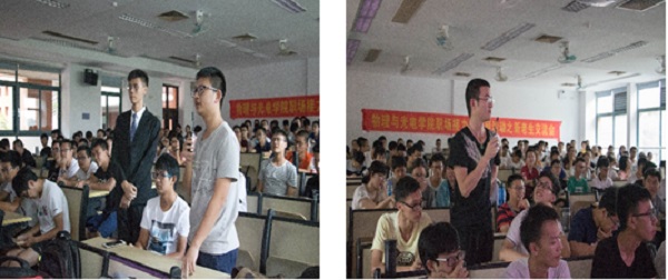 出席本次交流会的嘉宾有:学院团委副书记潘裕利(保送华工)、14级应物专业师兄王炫岚(考研)、14级应物专业师兄陈晓凯(保送上海交大)、14级应物专业师姐李晓群(保送复旦)、14级应物专业师兄马守然(出国)、14级光电专业师兄项宇銮(保送浙大)。