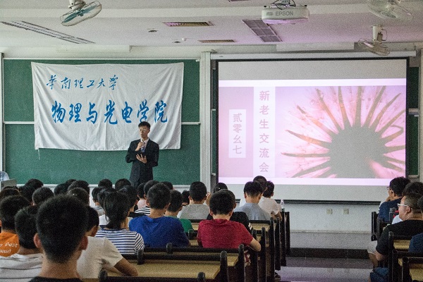 为了欢迎17级新生们加入物院大家庭,帮助新生解决新环境带来的迷茫和困惑,让他们能尽快熟悉大学校园生活和学习,这次我们邀请了物理与光电学院优秀师兄师姐为大家分享经验,解疑答惑。让新生在以后的学习及生活中有个学习的榜样,尽早做好大学规划。此次’“职场接力棒第二十七棒之新老生交流会”于2017年9月14日15:00在华南理工大学大学城校区A3-207顺利举行,由我学院团委学生会主办,团学外联部、生活权益部承办。
