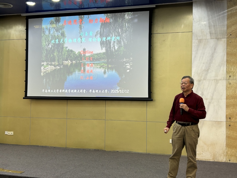 2025年12月12日上午,物理与光电学院在华南理工大学五山校区逸夫人文馆报告厅举行了本科教学创新大讲堂报告会。北京大学刘玉鑫教授作了题为《启迪思考,助力翱翔》的报告。学院党政领导、全体教职员工到场聆听了报告会。报告会由文德华副院长主持。