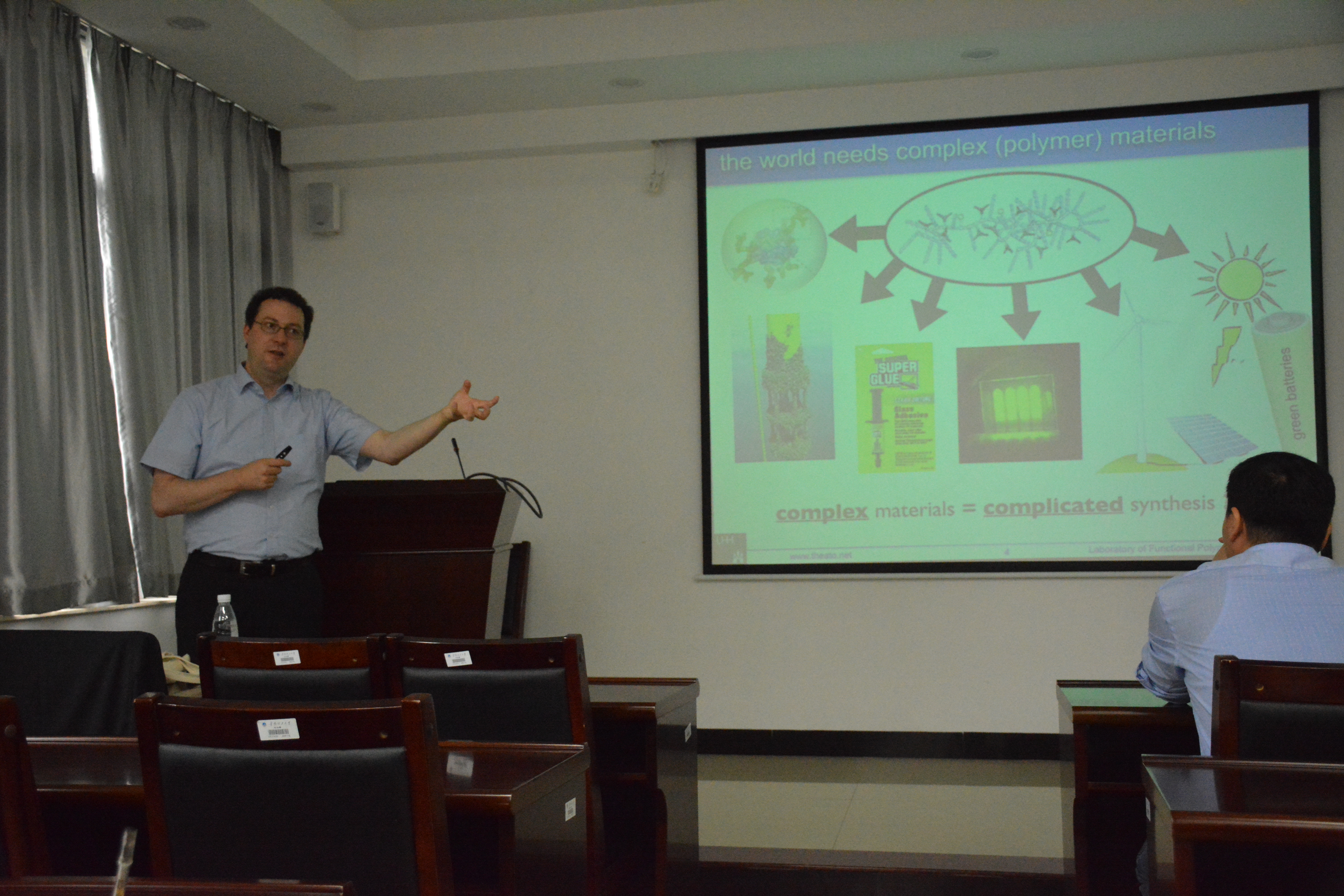 Simplifying Molecular Complexity of Polymer Synthesis的学术报告。在学术报告中,老师以及同学们与Theoto教授就材料粘弹性表征、材料表面亲疏水性调控等问题进行了较为深入的探讨。