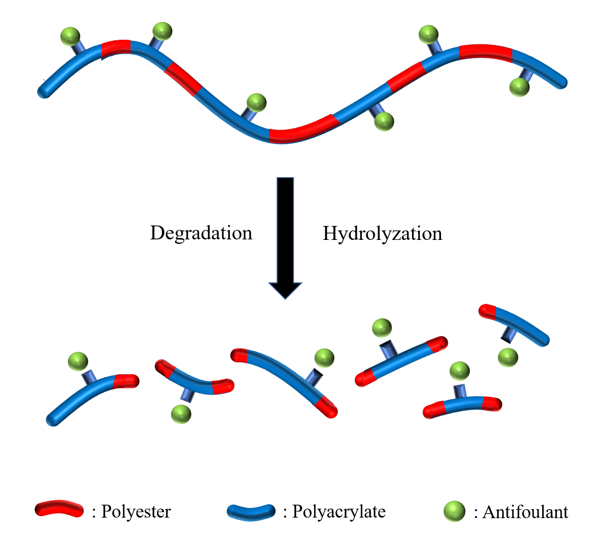 Biodegradable Poly(ester-co-acrylate) with Antifoulant Pendant Groups for Marine Anti-Biofouling ABSTRACT: Polymer resins are critical for marine anti-biofouling coatings. In this study, degradable poly(ester-co-acrylate) with antifoulant pendant groups has been prepared by the radical ring-opening polymerization of 2-methylene-1,3-dioxepane, methyl methacrylate, and N-methacryloyloxy methyl benzoisothiazolinone. Such a polymer containing main-chain esters can hydrolytically and enzymatically degrade. Both degradation rates increase with main-chain ester content. Moreover, since the antifoulant groups are chemically grafted to the degradable main chain, their release can be controlled by the degradation besides the hydrolysis of side groups. Our study shows that the copolymer coating is efficient in inhibiting the accumulation of marine bacterial biofilm of Pseudomonas sp. and diatom Navicular incerta. Marine field test reveals that the copolymer has excellent efficiency in preventing biofouling for more than 6 months. 文章链接:https://pubs.acs.org/doi/10.1021/acsami.9b01247 |
