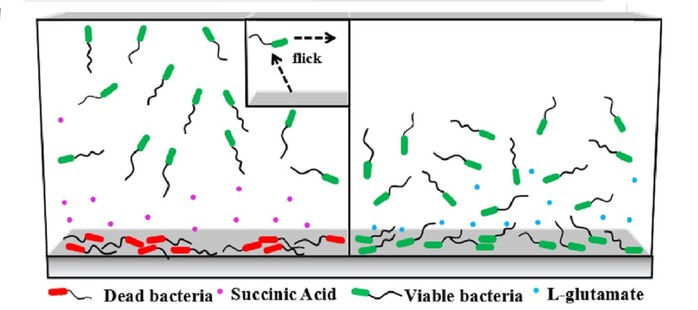 Abstract: To understand the antimicrobial effect of surfaces fabricated with dead probiotics, we prepared surfaces decorated with dead probiotics Lactobacillus rhamnosus GG (LGG) with varied inactivation methods and explored their inhibitory interactions with Pseudomonas aeruginosa (PAO1). By combining several techniques, i.e., digital holographic microscopy (DHM), atomic force microscopy (AFM), RNA sequencing, and metabolomic analysis, we studied the three-dimensional (3D) swimming behaviors, surface adhesion, biofilm formation, and adaptive responses of PAO1 near such surfaces. The results show that planktonic PAO1 decreases their flick and reverse motions by downregulating the chemotaxis pathway and accelerates with less accumulation near dead LGG surfaces by upregulating the flagellar assembly pathway and decreasing cyclic adenosine monophosphate. Distinct from live siblings, the surfaces decorated with dead LGG show a significant reduction in adhesion strength with PAO1 and inhibit biofilm formation with more downregulated genes in the Pseudomonas quinolone signal and biofilm formation pathway. We demonstrate that the antibacterial ability of such surfaces stems from the gradually released lysate from the dead LGG that is unfavorable to PAO1 in close proximity. The releasing rate and order depend on the cell membrane integrity, which closely relates to the inactivation methods. DOI:10.1021/acs.langmuir.3c01818 |