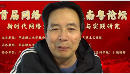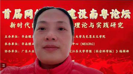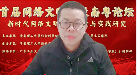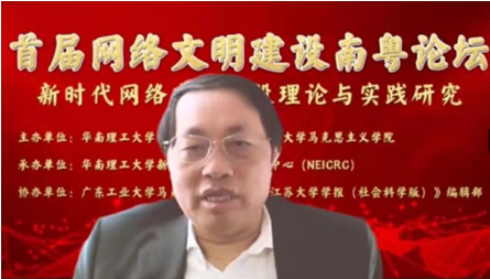12月18日,首届网络文明建设南粤论坛以线上方式在广州召开。本次论坛由华南理工大学社会科学处、华南理工大学马克思主义学院主办,华南理工大学新时代网络文明研究中心承办,广东工业大学马克思主义学院、《江苏大学学报(社会科学版)》编辑部协办,论坛主题为“新时代网络文明建设理论与实践研究”。来自中国人民大学、华中科技大学、中山大学、吉林大学、华南理工大学、暨南大学等20余所高校的专家学者作重要发言,共同探讨新时代网络文明建设。论坛由华南理工大学新时代网络文明研究中心执行主任谢加书教授、华南理工大学公共管理学院周建青教授、华南理工大学马克思主义学院李旭辉副教授、江苏大学马克思主义学院孙旭红副教授、肇庆学院政法学院易明副院长分别主持‘ 华南理工大学党委常委、副校长李卫青致辞 华南理工大学党委常委、副校长李卫青在致辞中分享了华南理工大学近年来发展的情况,肯定了新时代网络文明研究中心自成立以来的优异成绩。广东省哲学社会科学规划领导小组办公室主任郑红军在致辞中倡导中国特色网络消费文明,并从新发展理念、人类文明新形态、美好生活的实现、建设中国特色网络消费文明的过程四个方面作了阐述。 华中科技大学马克思主义学院黄岭峻教授作主旨发言 两位特邀嘉宾作了主旨发言。中国人民大学马克思主义学院副院长陶文昭教授以“网络文明的底层逻辑”为主题,提出我们应当以唯物辩证法的立场方法来看问题,深刻认识到信息技术是科学技术发展的最新代表,是推动社会进步的重要动力。信息技术作为最新的技术与社会主义作为崭新的社会制度是协调的、相互促进的,有利于社会主义;作为先进的生产力,有利于中国发展;在效能上说,运用信息技术能大规模、快速地掌握社会情况,有利于社会治理;作为经济全球化的重要支撑,为各民族文化的交流和融合提供了新平台新途径,有利于构建人类命运共同体。华中科技大学马克思主义学院黄岭峻教授提出加强互联网行业非公企业党建是加强新时代党的建设的必然要求,也是不断推动互联网企业健康发展、实现网络强国目标的现实要求。当前,互联网企业党建存在管理体制不顺畅、组织体系不完善、互联网企业党建基础薄弱、基层党建人才支撑体系待完善、党建工作创新性不强、党建工作边缘化、企业党支部工作延续性差、党建工作发展缓慢等诸多问题。黄岭峻认为应通过建立联席机制、完善组织体系、构建党建工作科学化扶持体系、发挥重点企业示范作用等方法提升互联网企业党建实效。 学者们纷纷围绕“新时代网络文明建设理论与实践研究”作了大会发言。 中山大学马克思主义学院童建军教授重点谈到同情的伦理风险。他认为同情有为善者不得善报的风险、存在于任何时段的风险还有被利用的风险。由于网络时空的特殊性被不断放大,其风险更大。吉林大学马克思主义学院常艳芳教授以新时代网络文化安全研究的三重维度为视角,推进文化自信自强,铸就社会主义文化新辉煌;华南理工大学马克思主义学院王晓丽副院长则站在后熟人社会的角度,廓清了后熟人社会的生成及其道德意蕴;暨南大学马克思主义学院陈联俊副院长结合算法技术,分析了算法技术与网络空间意识形态话语权构建的关系问题;北京化工大学马克思主义学院贾钢涛院长基于社会之维的视角对网络思想政治教育进行了新思考;广东工业大学马克思主义学院揭晓院长从“两个确立”出发,阐明了“两个确立”对维护国家意识形态安全的决定性意义;广东财经大学马克思主义学院袁继红院长以党的二十大报告为依据,阐明了国家安全体系和能力现代化的中国探索问题;江苏大学马克思主义学院孙旭红副教授梳理了新时代以来党的新闻舆论为何引导、引导什么以及怎样引导的重要问题;华南理工大学法学院谢惠加教授指出网络生态治理行政执法中存在许多问题等问题,应构建以网信办为统筹的综合性执法体系,优化行政执法程序,创新行政监管措施,切实完善网络生态治理行政执法体系。 华南理工大学公共管理学院周建青教授提出网络空间良好生态有自由有序、发展活力、动态稳定等特点,要求加强网络空间精神文明建设,促使“线下”与“线上”身份认知的统一,构建多中心协同共治网络,保障网络空间多元主体和谐发展;山西省社科院李卫民副研究员分享了个人在学术创新和理论创新的心得体会,对“关于理论创新的若干思考”进行了深刻而全面的诠释;西安交通大学新媒体学院沈霄副教授重点关注了残障者视频实践路径与生产逻辑问题;华南理工大学马克思主义学院祝全永教授深入探赜了信息化时代中国共产党使命型政党重塑与网络党建问题;福建农林大学马克思主义学院郑元景教授从技术哲学角度论述了中国式网络文明何以生成的问题;肇庆学院政法学院易明副院长与各位学者共同探讨了“数字社会主义何以可能”的全新领域;广东技术师范大学文学与传媒学院张文婷讲师向与会人员分析了青年群体在数字记账过程中所凸显的欲望规训与塑造问题;天津理工大学马克思主义学院潘同人副教授则有针对性地提出了网络舆情治理的社会向度及其实践策略;四川外国语大学马克思主义学院刘建锋副教授从学生工作的视角对新时代大