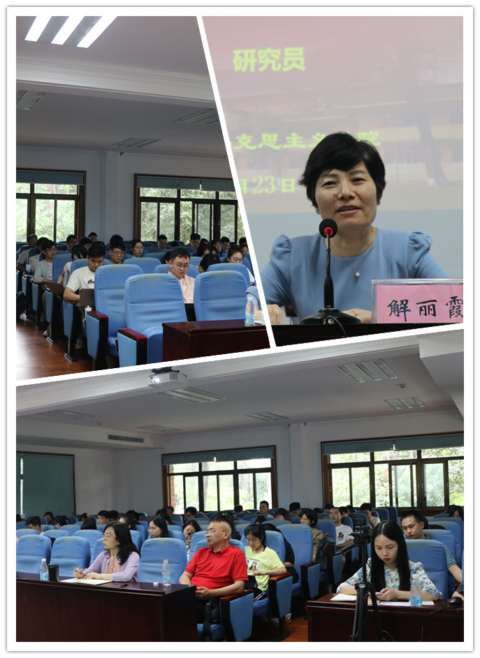 4月23日下午,我院举行马克思主义理论名家讲坛第106讲暨学习贯彻习近平新时代中国特色社会主义思想主题教育学习会,邀请中国史学会会长、清华大学马克思主义学院博士生导师李捷研究员为我院师生主讲“全面学习领会中国式现代化理论” 。学院院长解丽霞教授主持报告会,学院党委副书记刘少萍、叶玉嘉、教师代表以及博士和硕士研究生代表在5号楼201会议室主会场参加,部分学生代表在国际校区F3-a112教室集中观看。