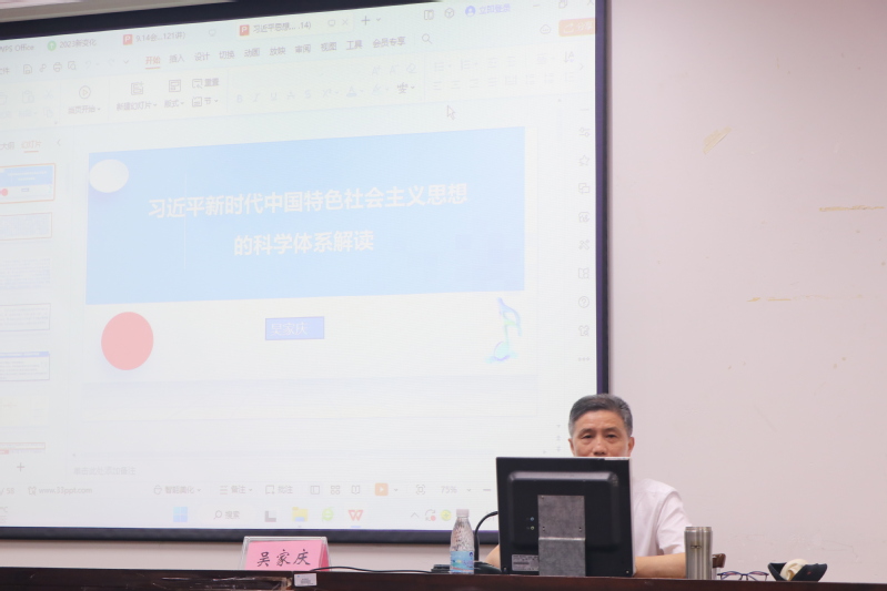 9月14日,马克思主义理论名家讲坛第121讲在5号楼201室成功举办。广西大学君武学者特聘教授、博士生导师,国家“万人计划”哲学社会科学领军人才,中央“马克思主义理论研究和建设工程”首席专家吴家庆应邀出席并作“习近平新时代中国特色社会主义思想的科学体系解读”主题报告。本次讲座由华南理工大学马克思主义学院院长解丽霞教授主持,学院领导班子成员、教师代表和全体研究生新生参加。