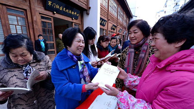 2015年1月16日,福建省福州市鼓楼区军门社区党委向社区居民赠阅《习近平关于党风廉政建设和反腐败斗争论述摘编》一书
